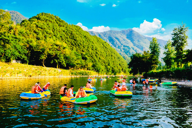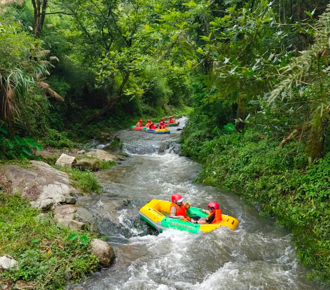 位于石台县大演乡的西黄山景区漂流项目,因水流平缓,成为亲子家庭游的热门选择。3公里长的河道蜿蜒在青山翠谷间,让游客在避暑的同时饱览自然风光。